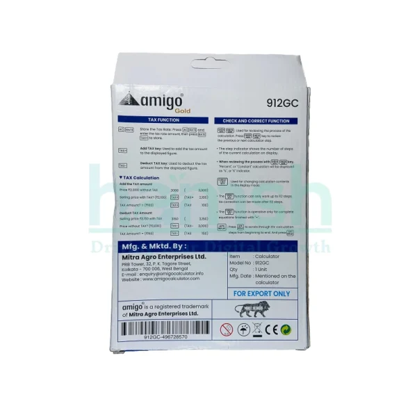 Combine style with performance using the Amigo Gold Calculator 912GC—your professional partner for accurate calculations.